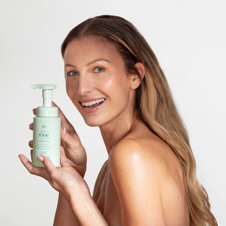KIREI is formulated specifically for sensitive skin with Aloe Vera and Cucumber Extract to gently purify without stripping your natural moisture barrier.
